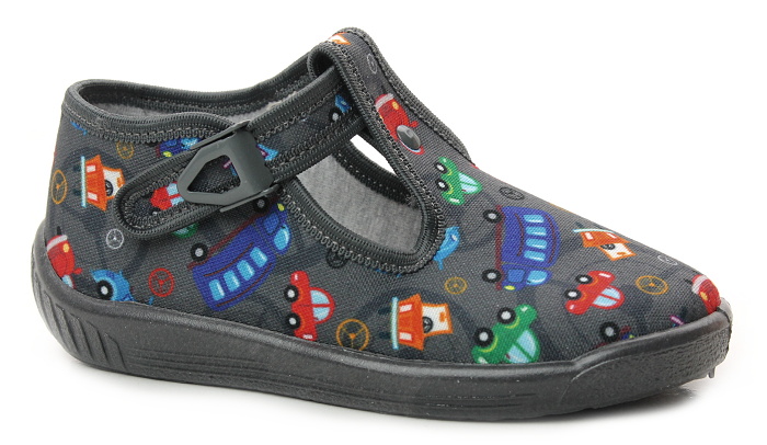 Dětské chlapecké bačkorky v šedé barvě s potiskem autíček.