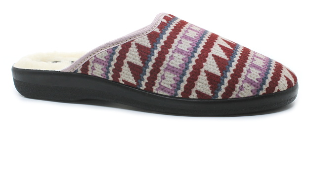 Dámské domácí bačkory vínové s barevným vzorem.