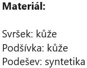 Svršek je vyroben z pravé kůže. Podšívka a nášlapná masážní stélka je kožená.