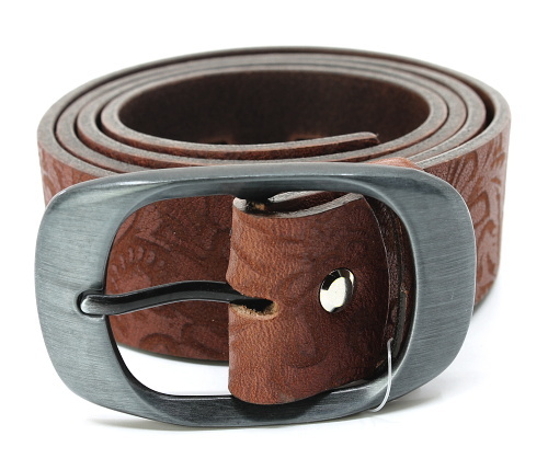 Dámský kožený opasek v hnědé barvě s potiskem o šířce 40 milimetrů.