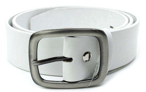 Dámský kožený opasek v bílé barvě o šířce 37 milimetrů.