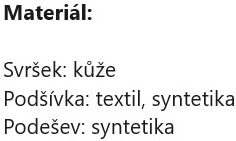 Podšívka je z kvalitní textilie a kůže, což zajišťuje pohodlí a prodyšnost.